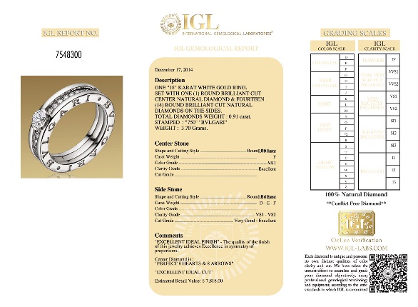 רשת מעבדות גמולוגיות הבינלאומית IGL מעניקה שירותי גמולוגיה מקצועיים ומנפיקה תעודות ליהלומים, תכשיטים ואבני חן בארץ ובעולם. לרשת נציגות בארץ בבורסה ליהלומים ברמת גן.
