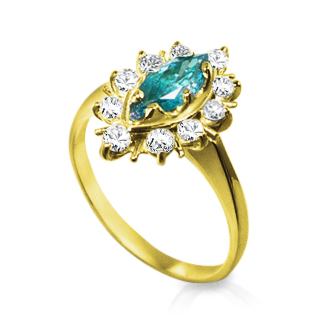 Home > Jewelry > Rings > טבעת דיאנה מלכותית אבן חן אמרלד/ברקת מרקיזה ו- 10 יהלומים