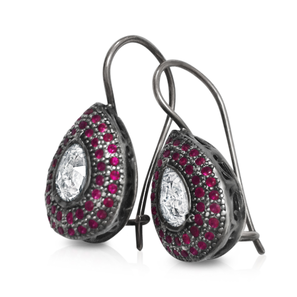 בית > Jewelry > Earrings > תכשיטים עתיקים-עגילים בכיצוב עתיק מקורי זהב יהלומים רובי אמרלד ברקת
