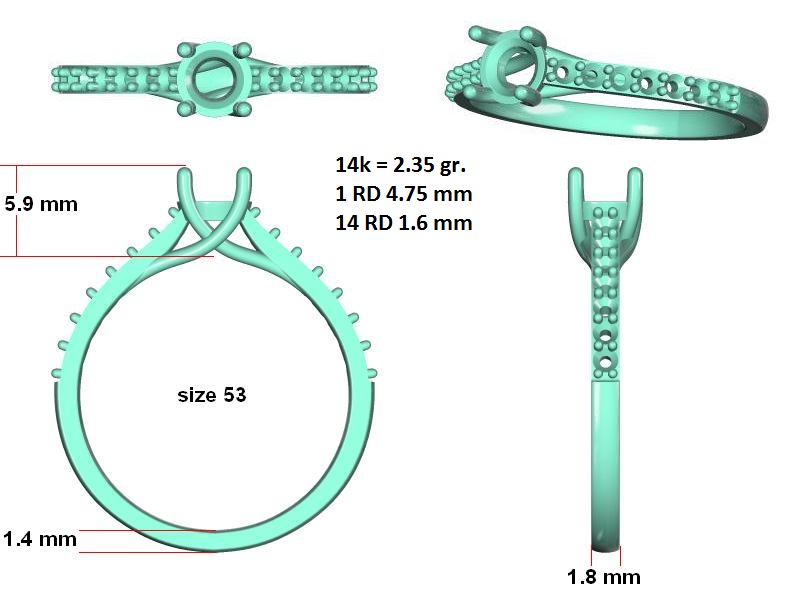טבעות אירוסין 15 נקודות יהלום מרכזי מחיר 2,800 ש"ח