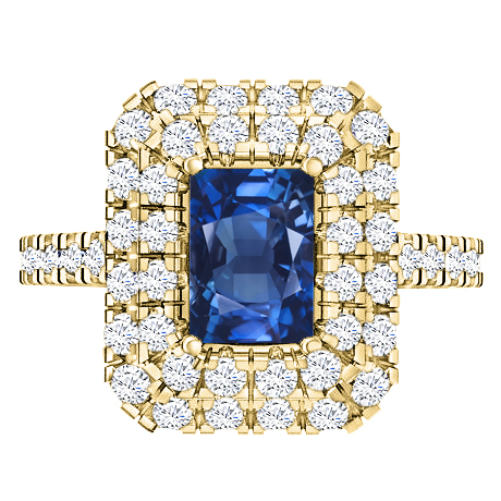 בית > Jewelry > Rings > טבעת אבן חן אמרלד ברקת ספיר רובי מלבני יוקרתית 2 שורות יהלומים