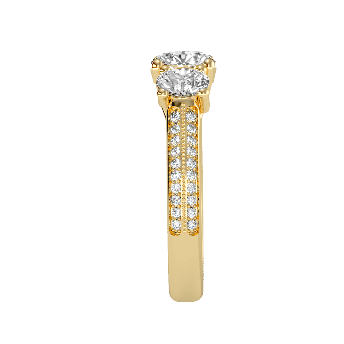 טבעת טריפל יוקרתית לאישה משובצת יהלומים בשתי שורות
